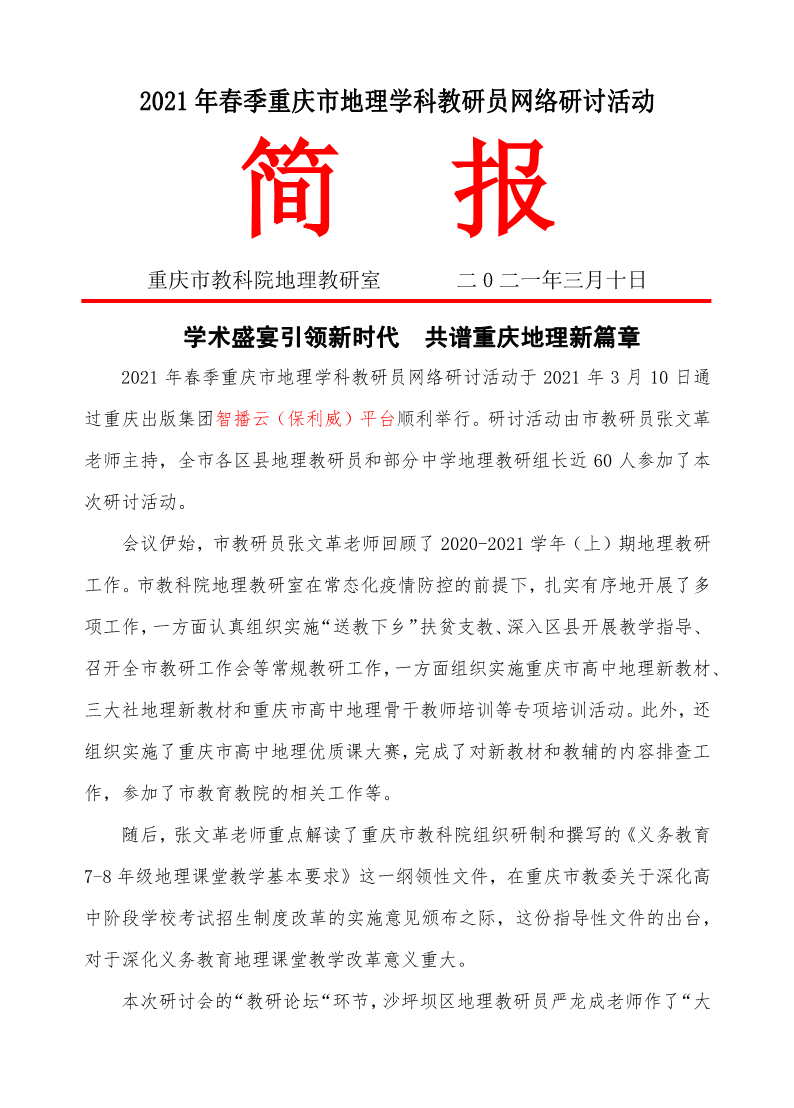 2021年春季重慶市地理學(xué)科教研員網(wǎng)絡(luò)研討活動(dòng)簡(jiǎn)報(bào)